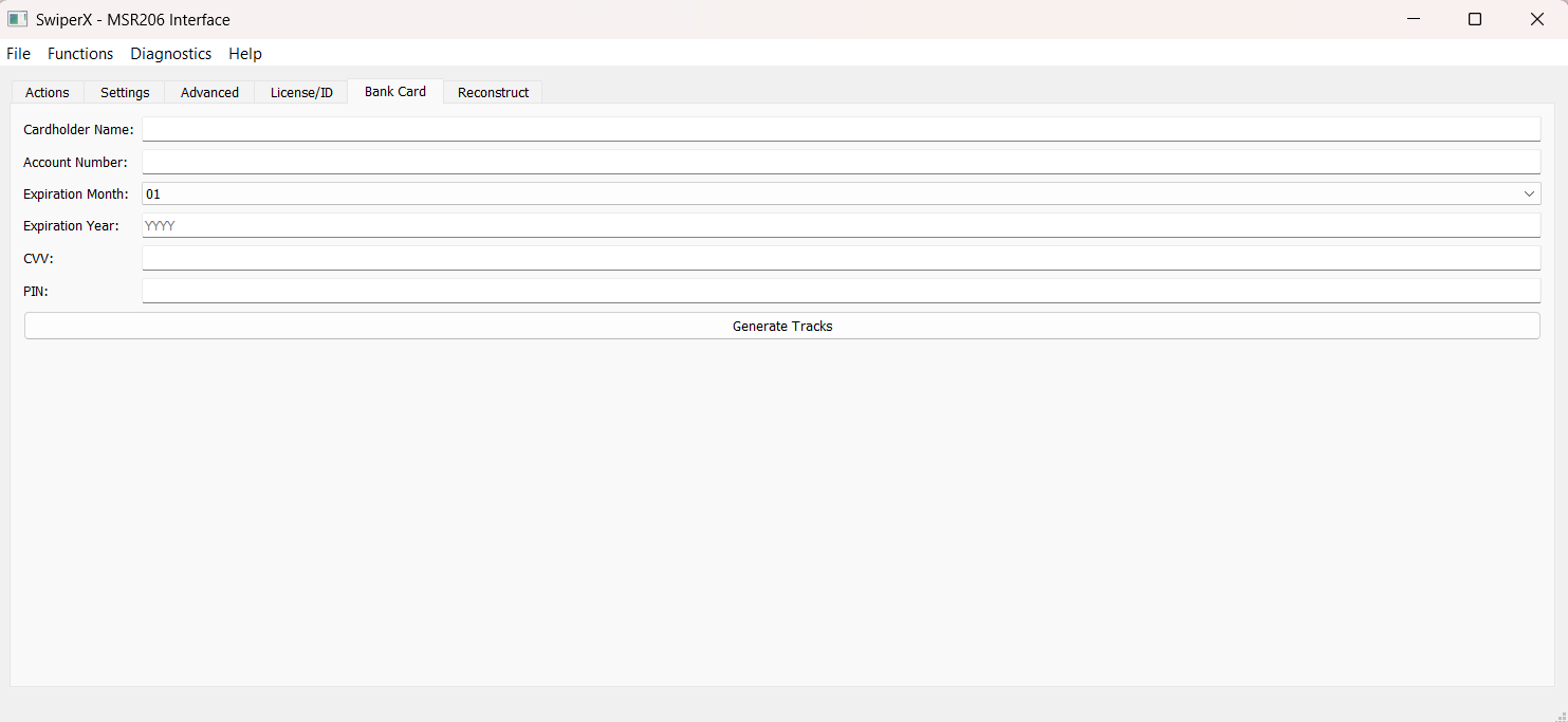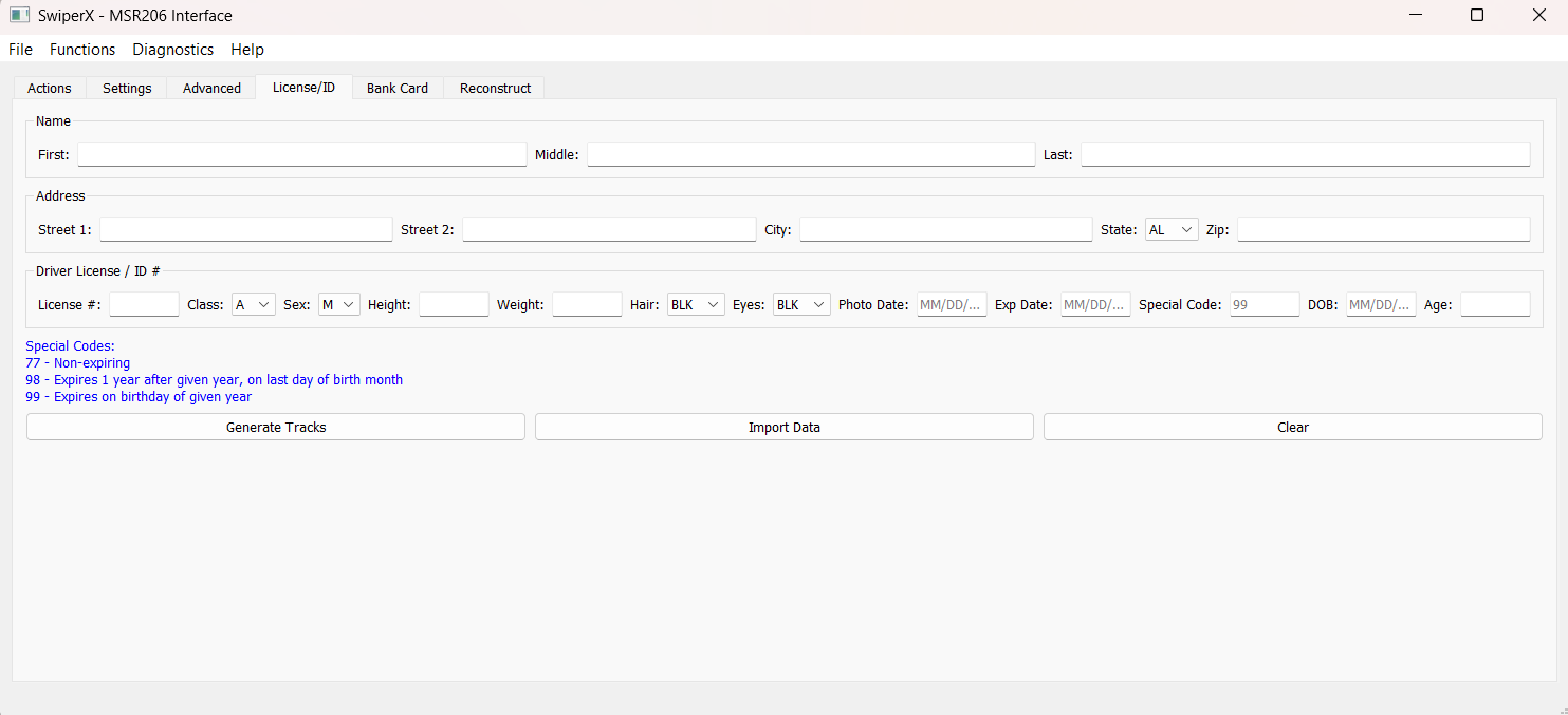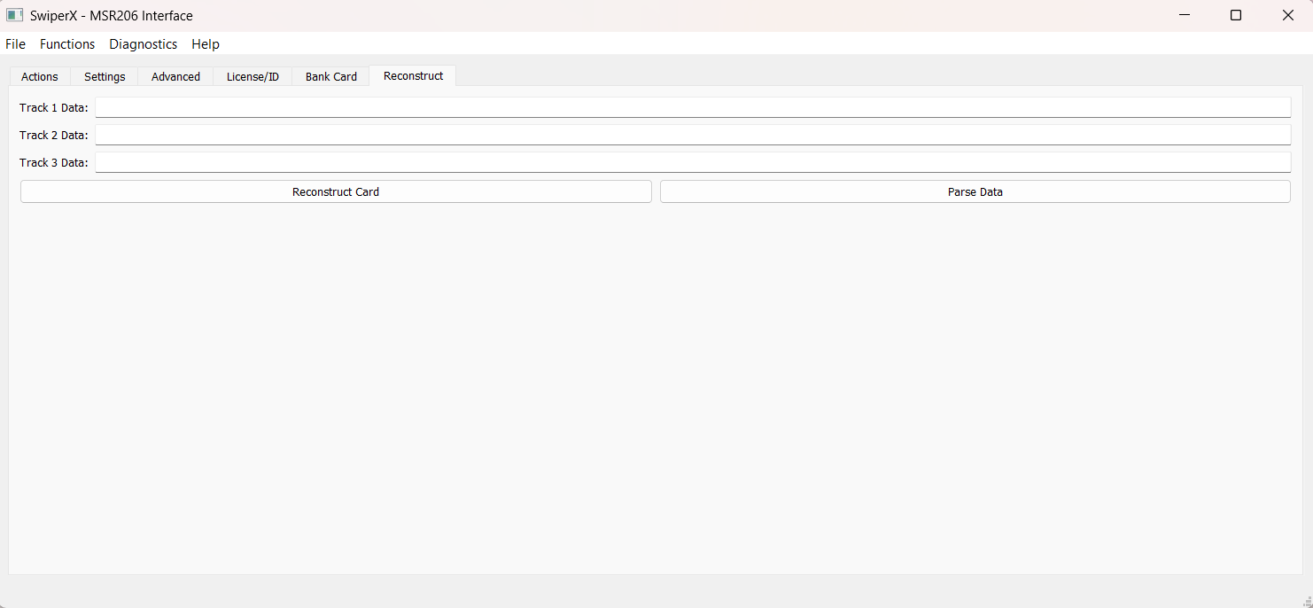Manual track data entry and parsing tool. Direct input of track strings, data extraction, and write for duplication/recovery.